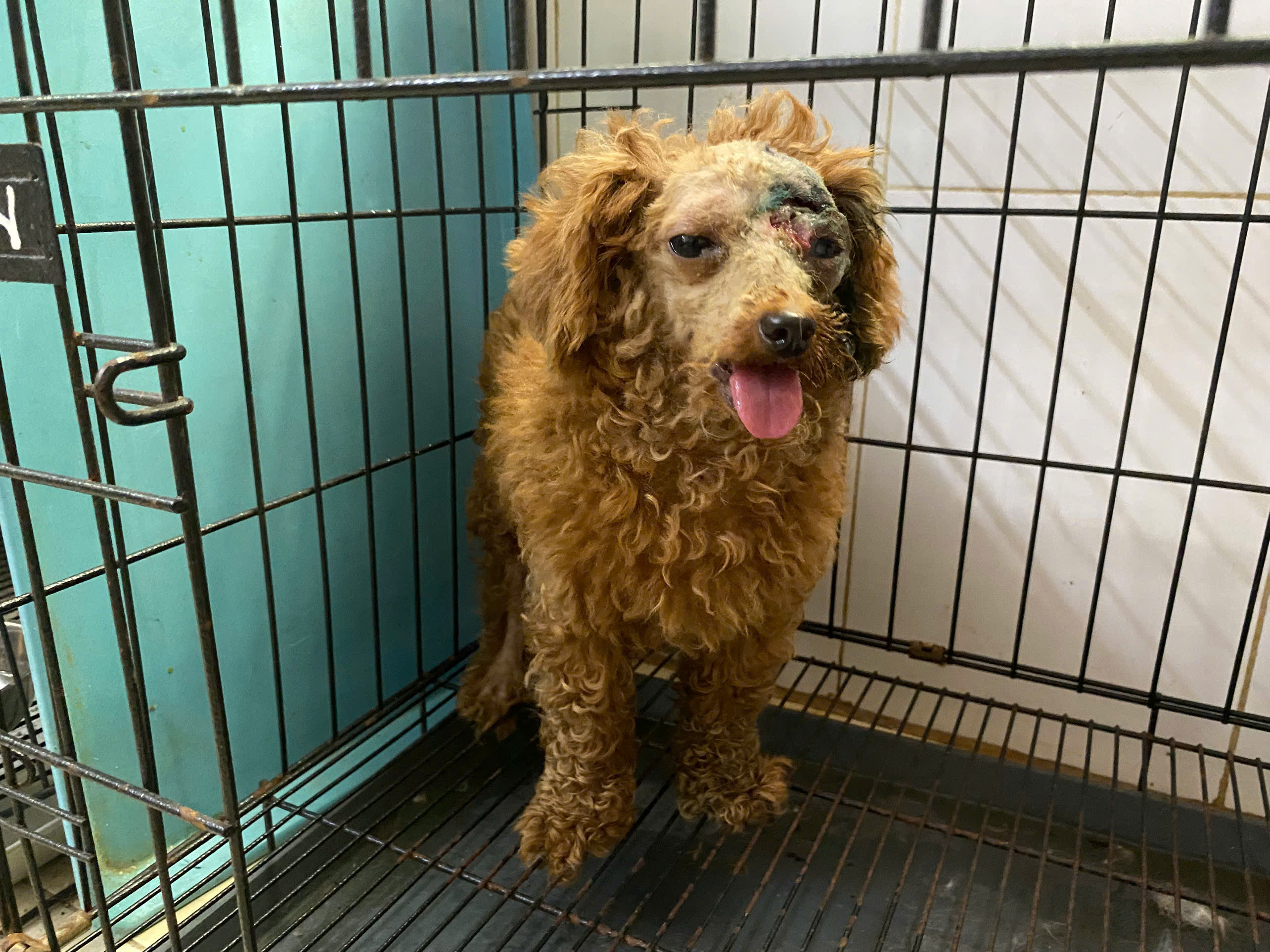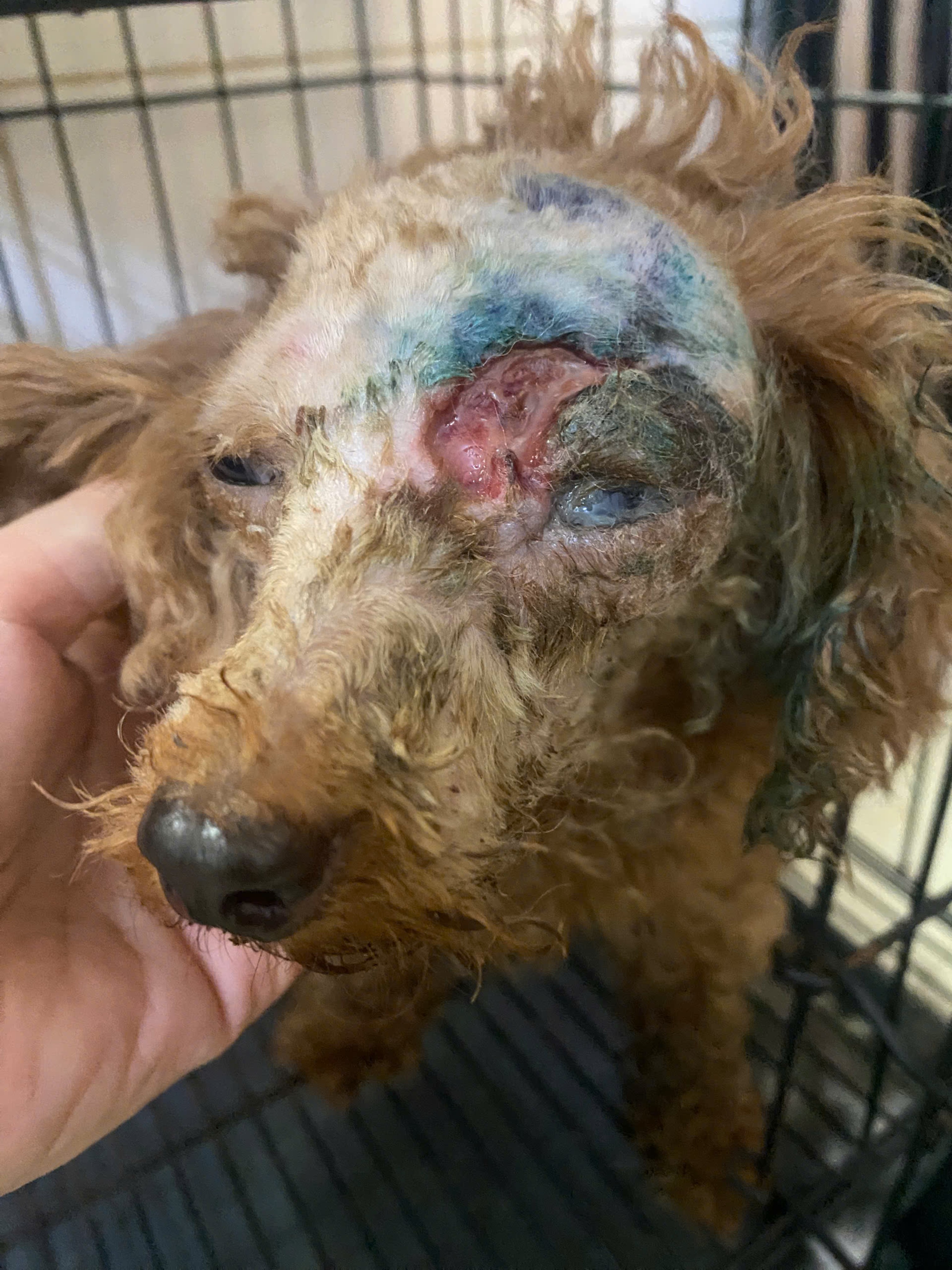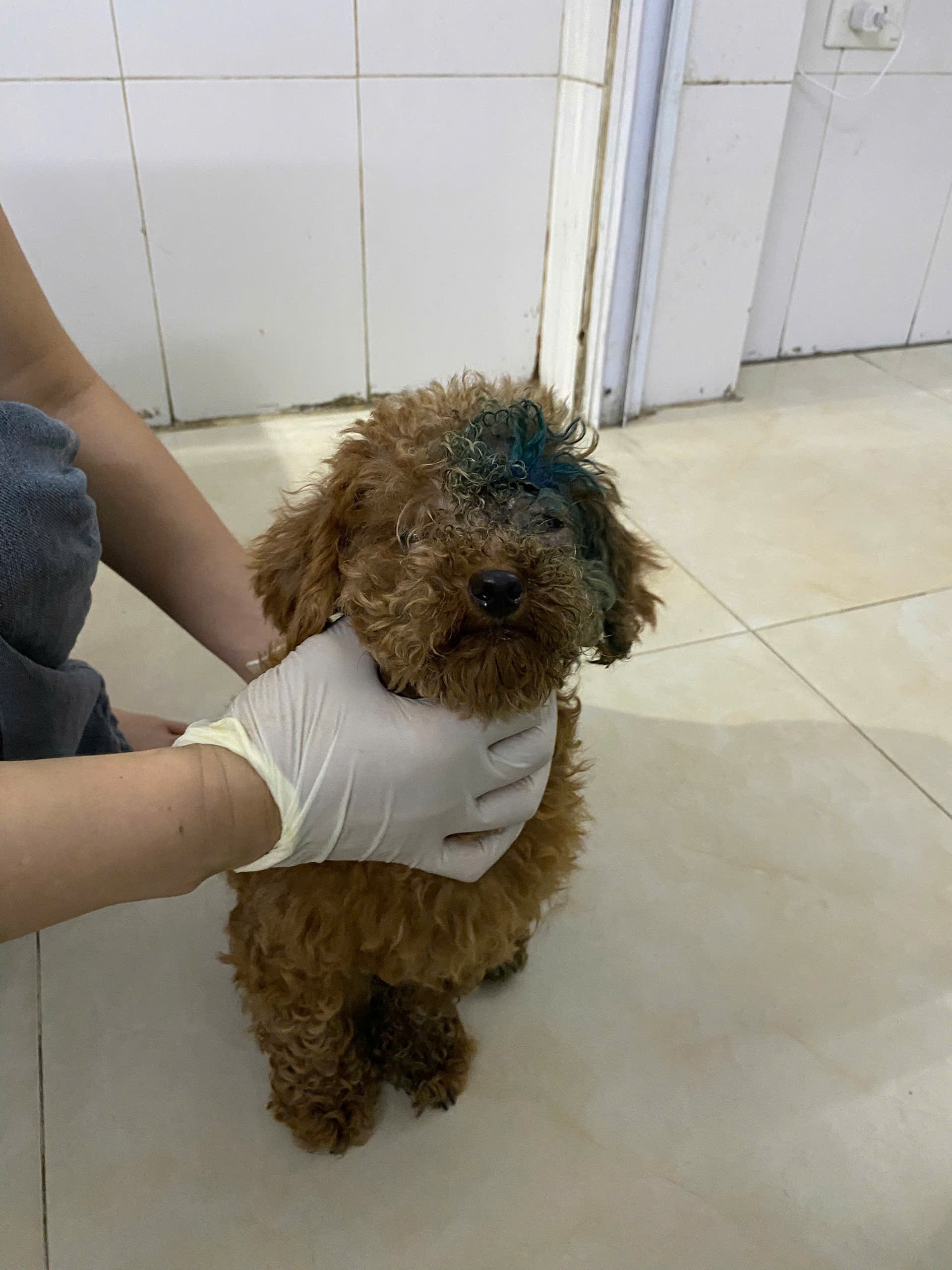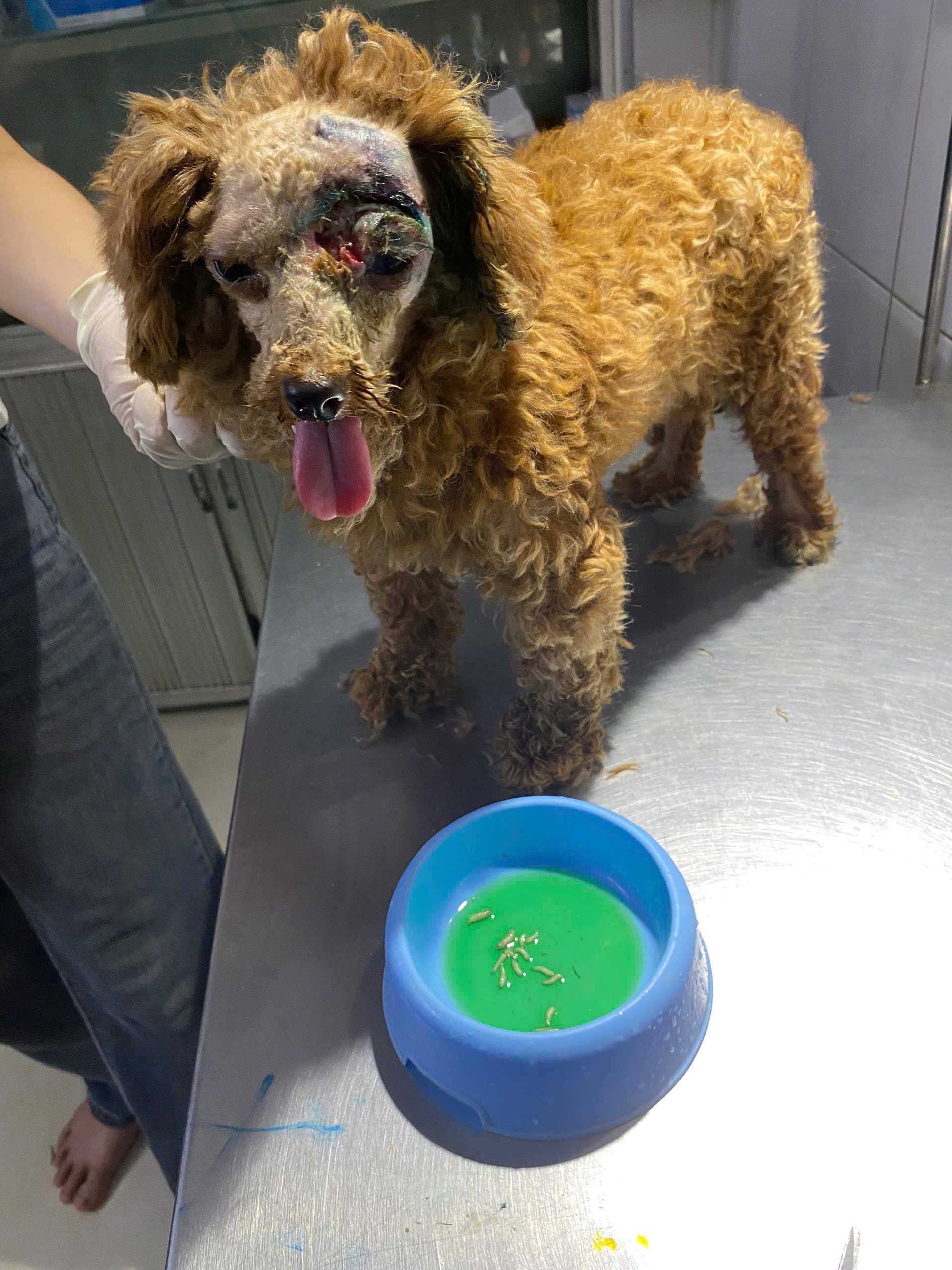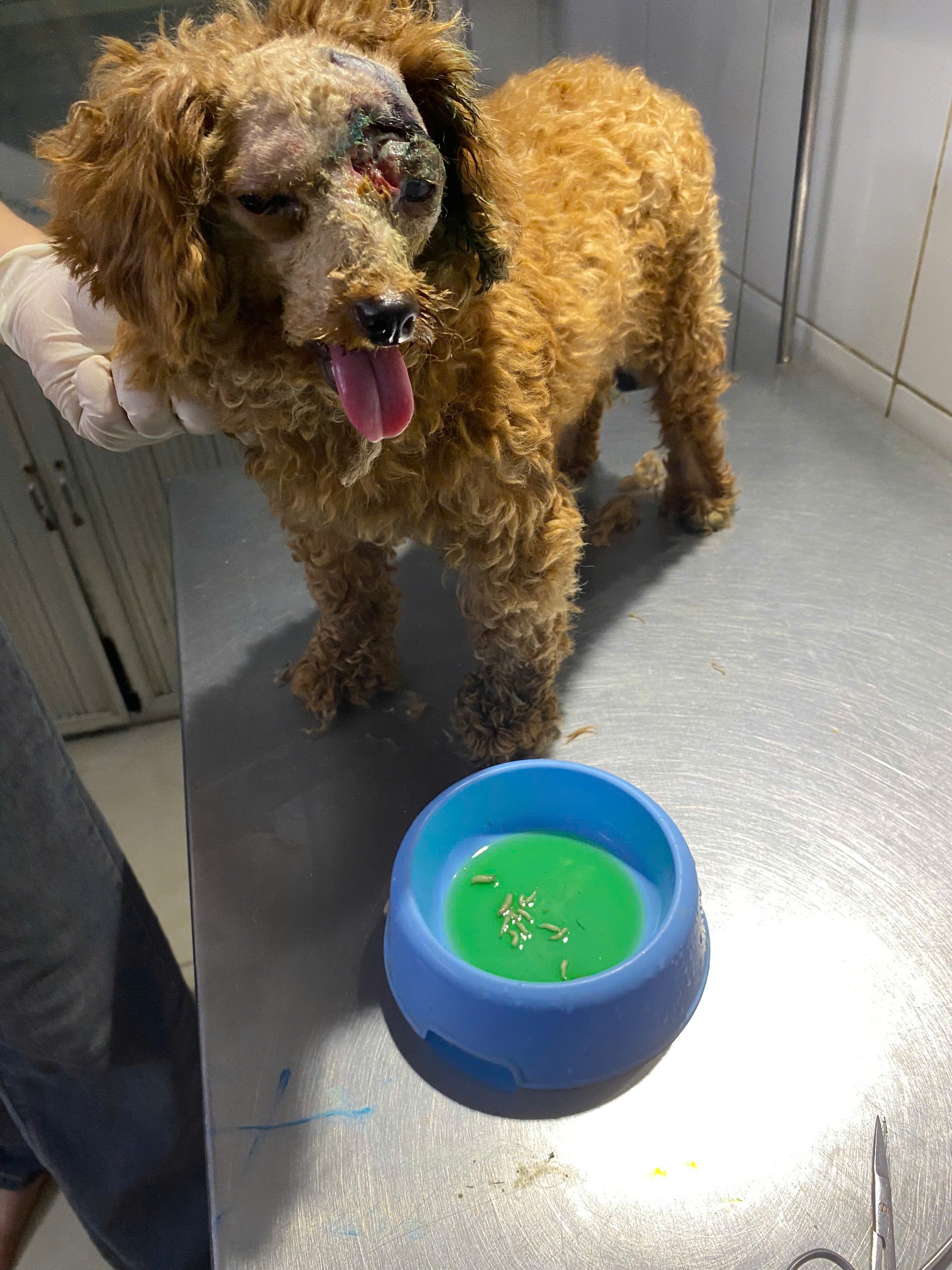 một bạn nhặt được trong tình trạng bị thương, thối loét trên đầu, bên trong nhiều dòi