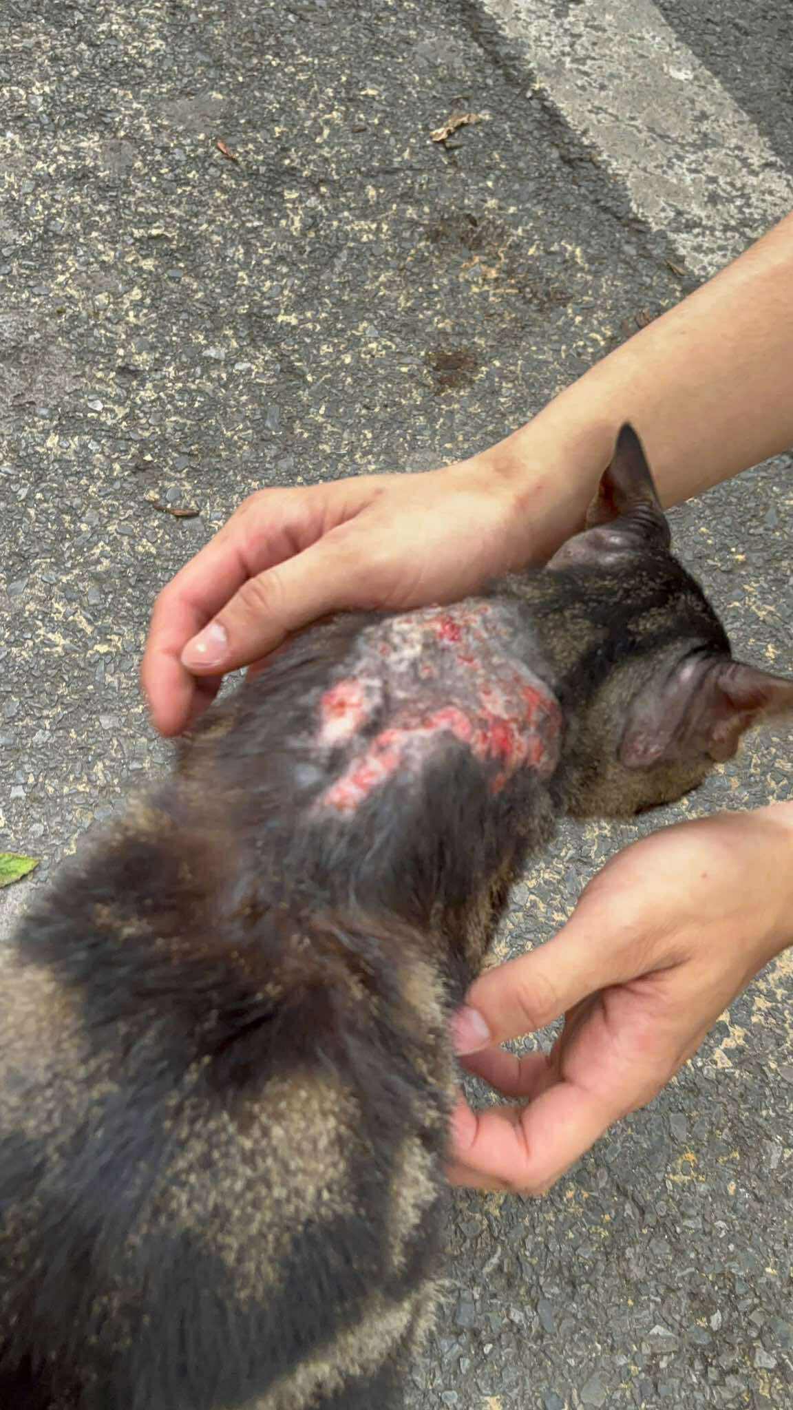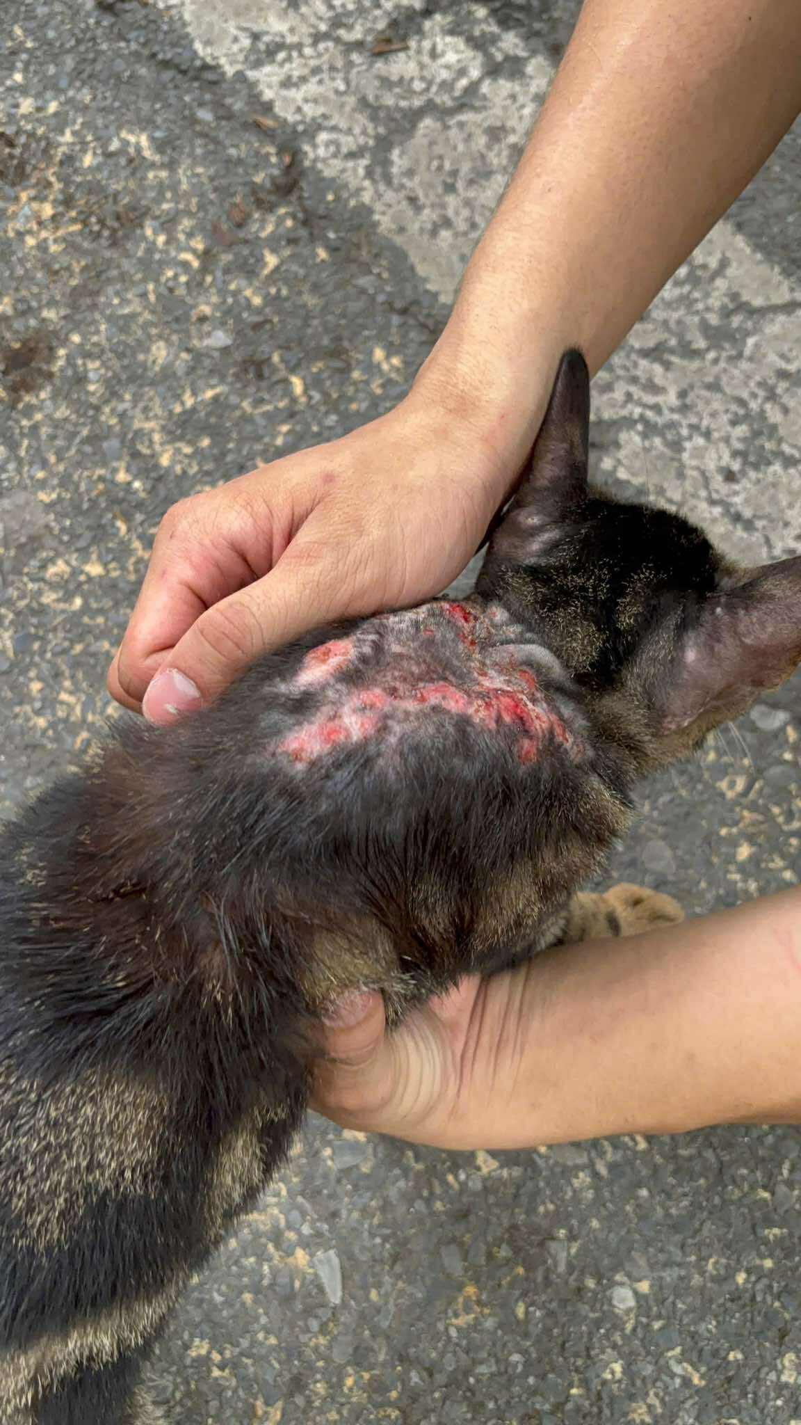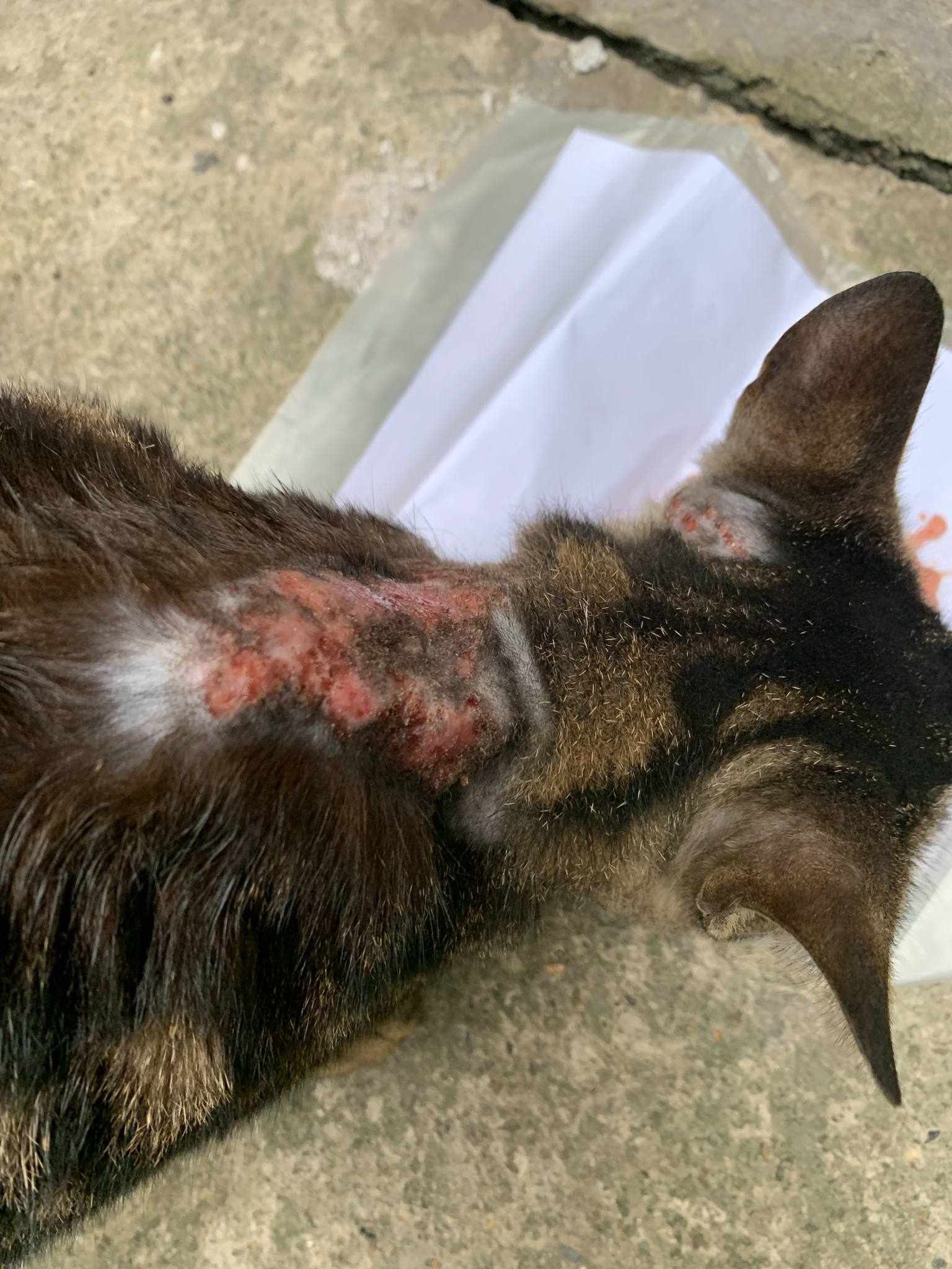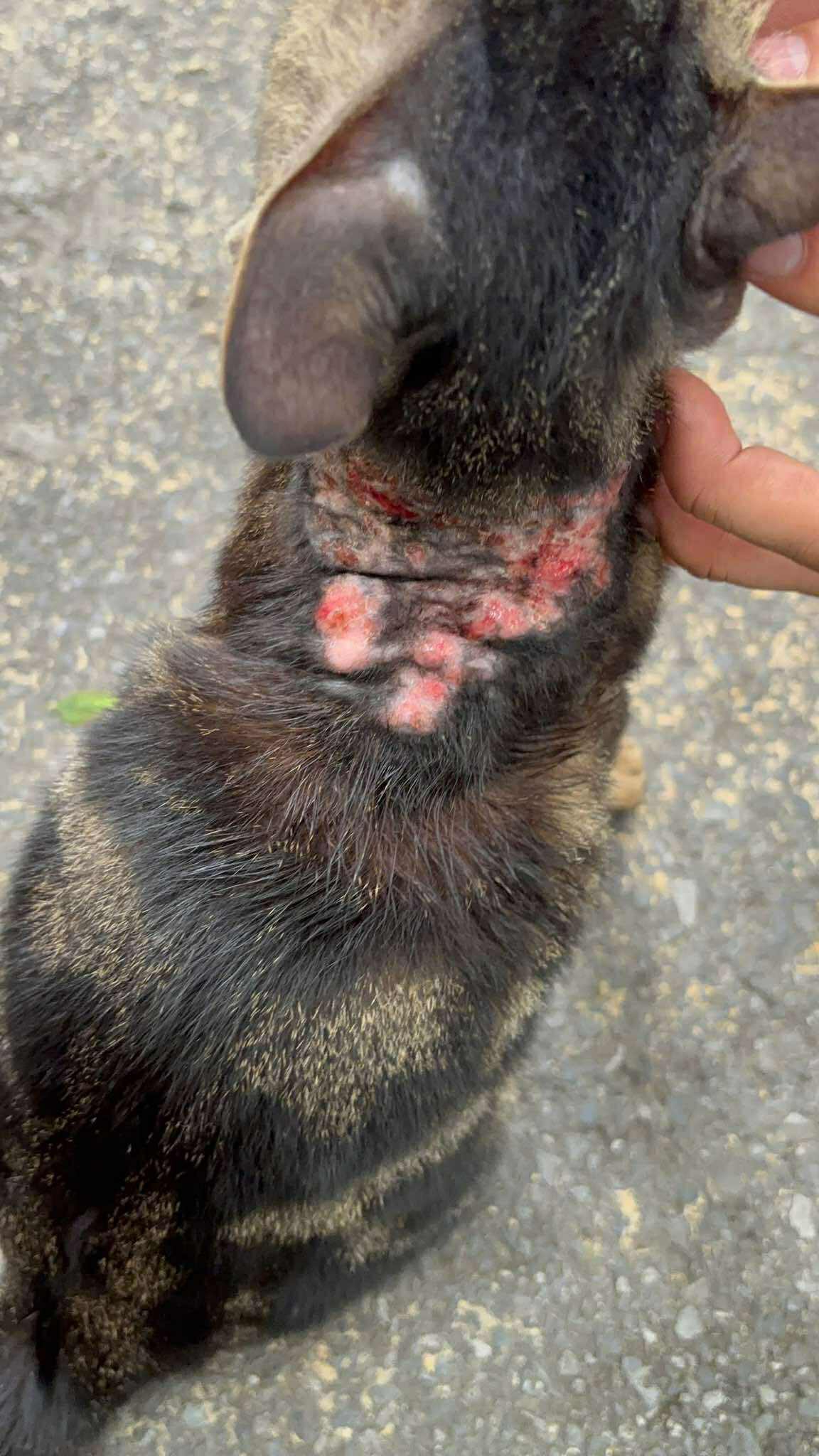 Bé bị viêm da nặng đi lang thang trong trường đại học nhân văn. Hiện đã được chữa khỏi