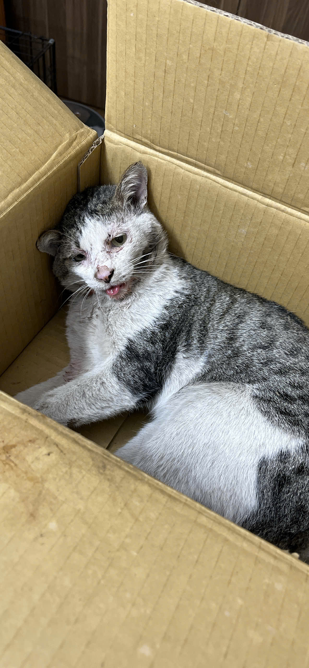 Bé bị tai nạn hoặc đánh nằm lết ở hàng Vôi. Hiện đã khỏi. Vôi đực đã tiêm phòng 2 mũi, siêu dữ siêu nhát, nhìn thấy người là khè, ăn cơm hạt pate thịt gà