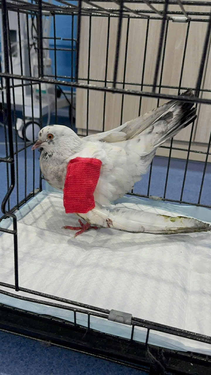 Chim bồ câu gãy cánh vào công ty bạn báo tin, nhóm đưa về Cat City. Bị hoại tử hết 1 bên cánh phải phẫu thuật đóng đinh.