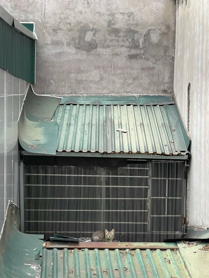 Bé lang thang trên mái nhà