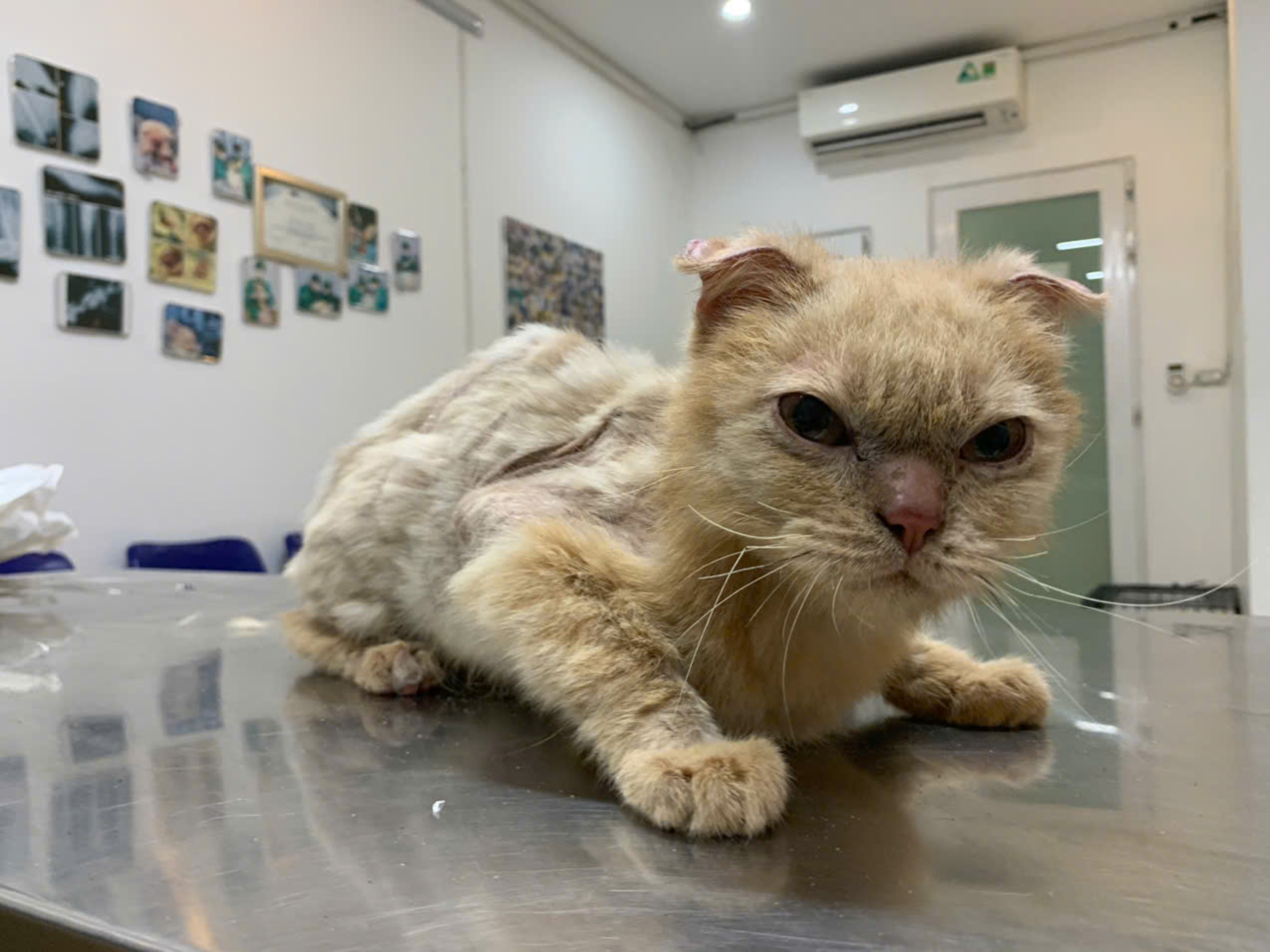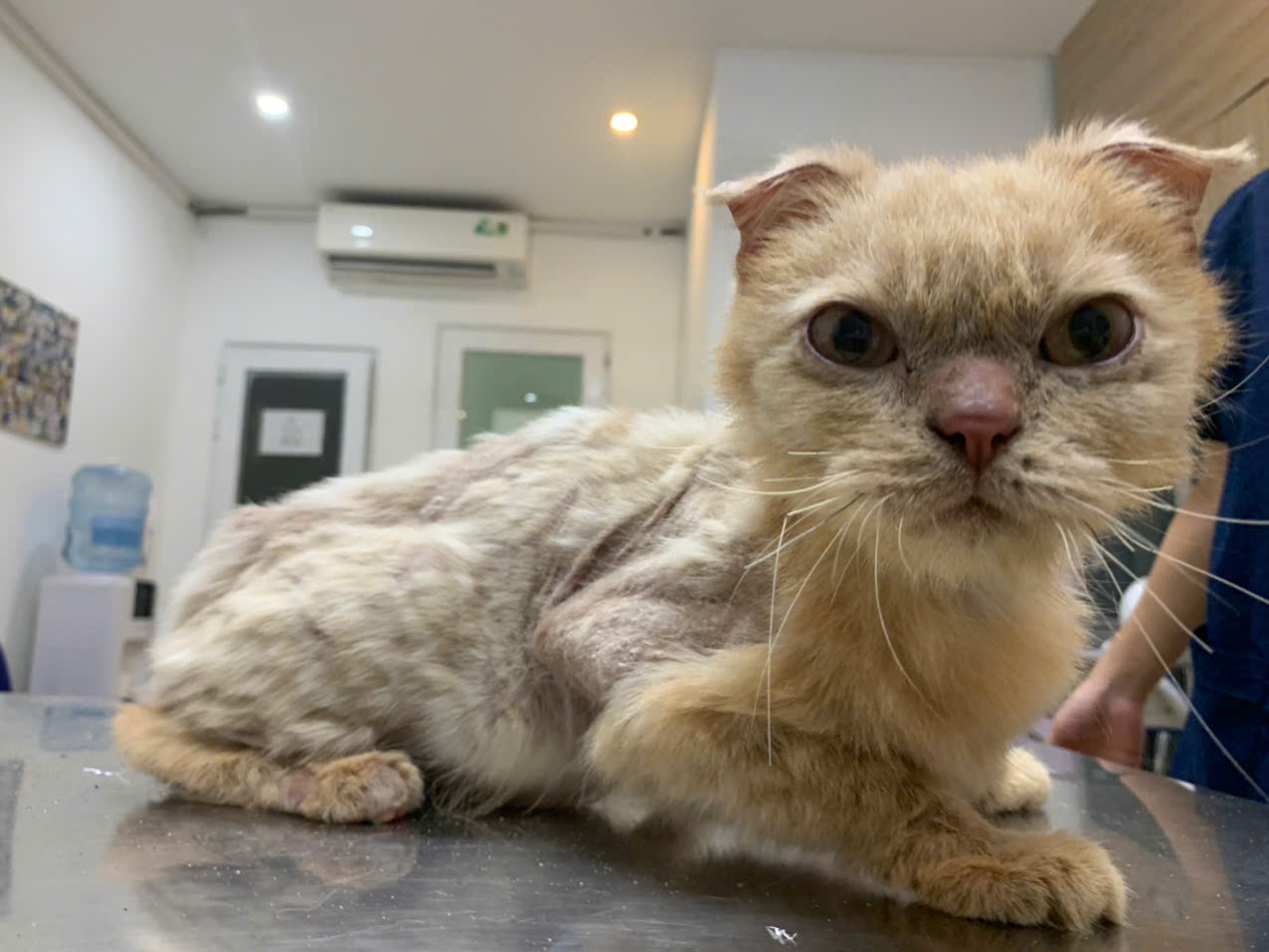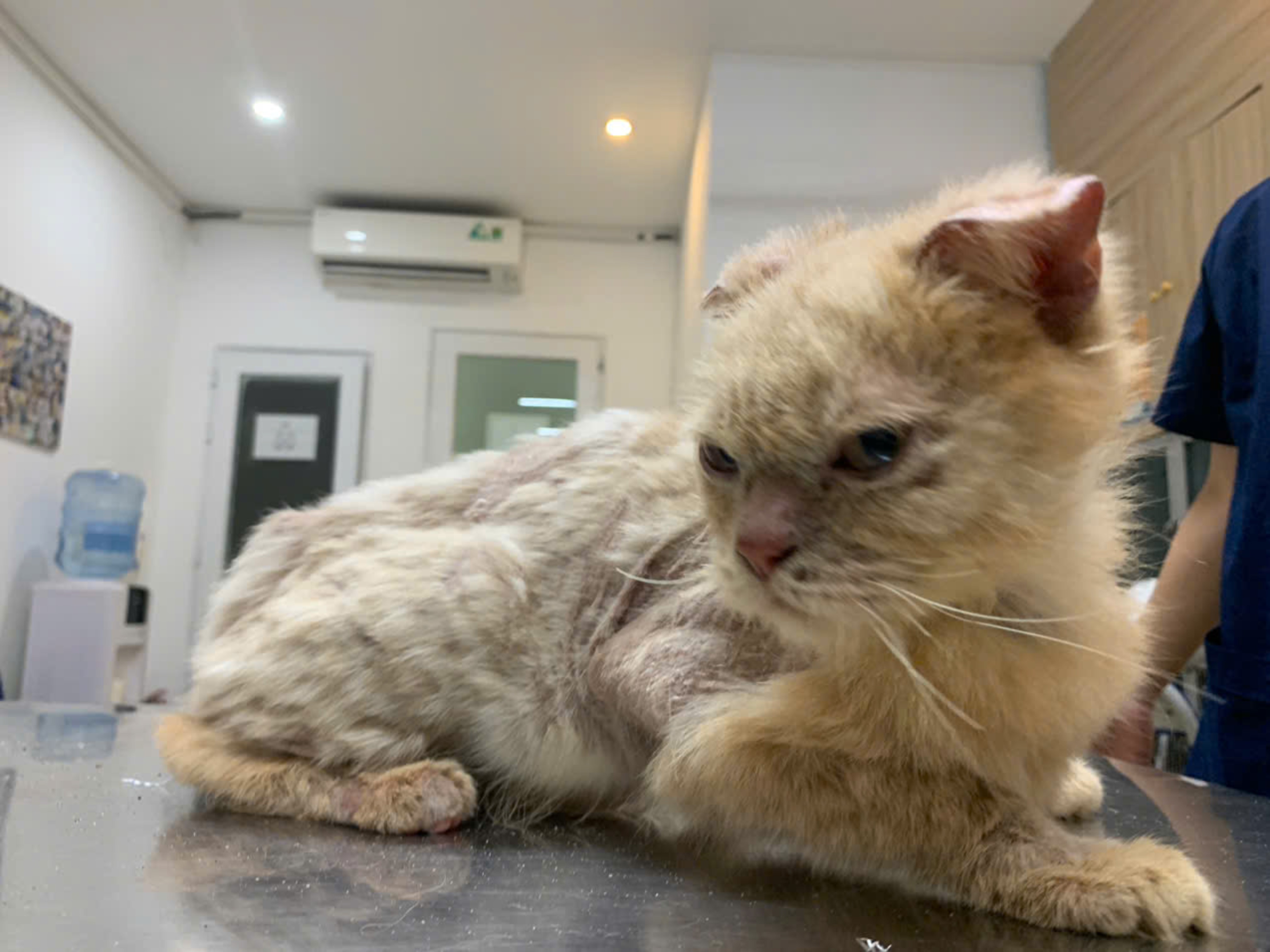 bé mèo đực đã triệt sản, khoảng 2-3 tuổi , gãy 2 răng nanh, nấm toàn thân lang thang ở Thanh Trì