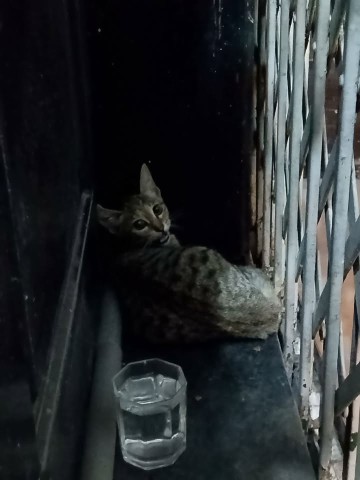 Bé mèo lang thang chui vào khe cửa xin ăn