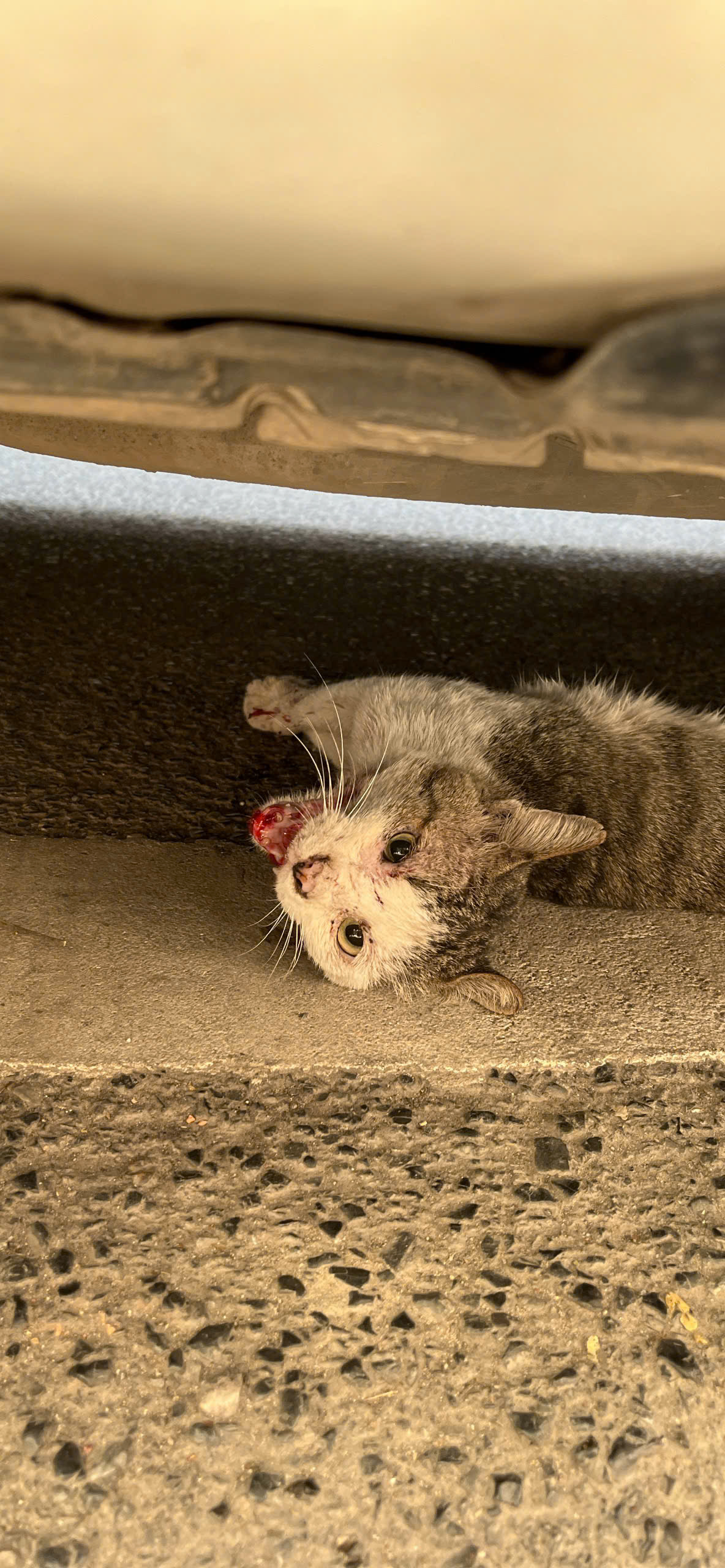 Bé bị tai nạn hoặc đánh nằm lết ở hàng Vôi. Hiện đã khỏi. Vôi đực đã tiêm phòng 2 mũi, siêu dữ siêu nhát, nhìn thấy người là khè, ăn cơm hạt pate thịt gà